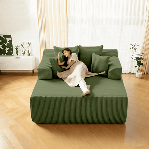 WENTUM Oversized Chaise Lounge Chair Indoor, Deep Seat Sleeper Couch with Pillows, Boneless Floor Sofa Bed for Living Room, Bedroom, No Assembly, Beige -